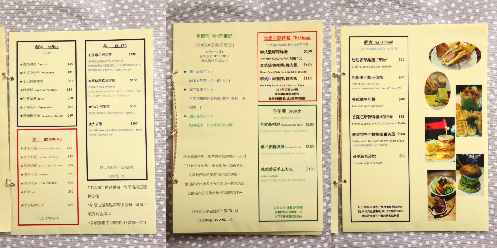 台南泰式料理-只要88元即可享有【喬爾莎食x玩筆記】原價130元食尚玩家消費金額抵用券。特別推薦:泰式海鮮酸辣湯(附紅茶)、泰式紅咖哩雞肉飯(附紅茶)、義式蕃茄肉丸(附焗豆+蛋+烤蔬菜+吐司+飲品3選1:果汁/紅茶/咖啡)、義式香料牛排(每日限6份)、紅茶奶霜、食玩特調。