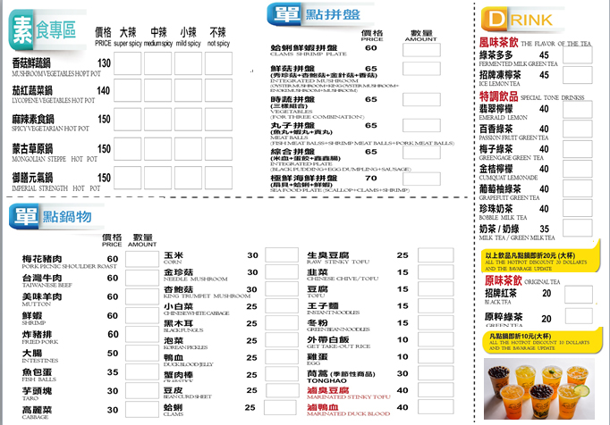 楊梅、龍潭、育英、南上、南園、新豐、南豐店:MENU